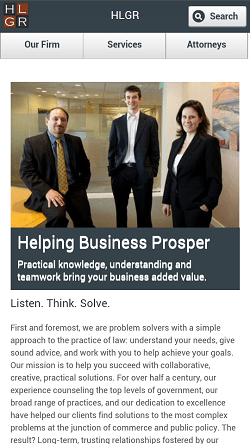 We built an accompanying mobile version of the Harrang website. The website automatically recognizes if you’re on a desktop computer or mobile device. If you’re on a mobile device, a mobile-optimized version of the website is automatically displayed. Below are some screenshots!